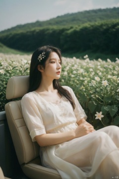breathtaking ethereal fantasy concept art of cinematic film still,chinese girl,a girl with white hair sitting in car filled with flowers,art by Rinko Kawauchi,in the style of naturalistic poses,vacation dadcore,youth fulenergy,a cool expression,body extensions,flowersin the sky,****og film,super detail,dreamy lofi photography,colourful,covered in flowers andvines,Inside view,shot on fujifilm XT4 . shallow depth of field,vignette,highly detailed,high budget,bokeh,cinemascope,moody,epic,gorgeous,film grain,grainy . magnificent,celestial,ethereal,painterly,epic,majestic,magical,fantasy art,cover art,dreamy,monkren, . award-winning, professional, highly detailed, light master, monkren, sunlight, liu yifei, film