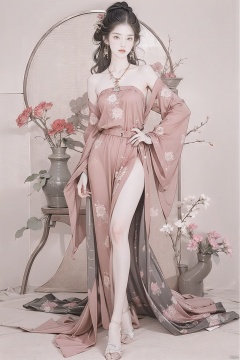 1girl, face, curly hair, black hair, standing,  Jewelry,  necklace,  earrings,  crescent, Dressed in Chinese Hanfu,  long bare legs,  full body,  whole body,  Simple background, graphite,<lora:EMS-266021-EMS:1.000000>,<lora:EMS-254904-EMS:0.600000>