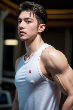(best quality:1.4),(masterpiece:1.4),(photorealistic:1.4),(Realistic:1.2),(ultra high res, raw photo:1.4),(hdr, hyperdetailed:1.2),(8K:1.2),cinematic photo 1man,upper body,gym_uniform,