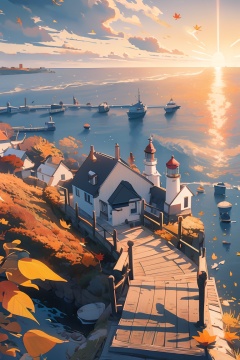(seaside,autumn,:1.2), Wide sea,horizon,There is a small lighthouse on the small bridge,very detailed , realistic details , light particle effect, excellent work, extremely elaborate picture description,8k wallpaper, obvious light and shadow effects, ray tracing, obvious layers, depth of field, best quality,