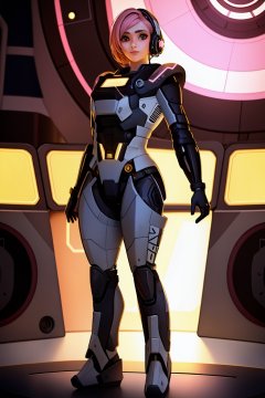 1 girl,solo,in the audience,short hair,full body,pink hair,armor,tights,science fiction,glowing ring behind giant clock shape,HD,32k,<lora:莉达:0.7>,