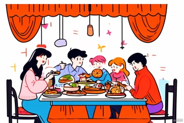 family of four,eat lunch,inroors,curtain,table,dishes,very happy,bianping