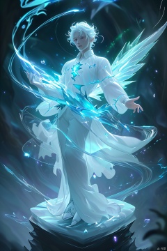 stars in the eyes,(full body:1.2),There are many scattered luminous petals,bubble,contour deepening,cinematic angle,adhesion, (\huo yan nan zi\),(white shirt:1.2), 1Man