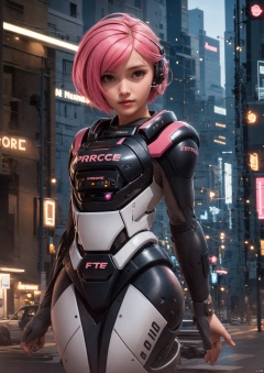 1girl, lida, Heads,upper body, cityscape, ray tracing, chiaroscuro, motion blur, depth of field, high quality, retina, masterpiece, ccurate, super detail, best quality, award winning, textured skin, 16k, highres, anatomically correct, day, lida,Sit, lida, solo, short hair, gloves, standing, full body, pink hair, armor, lips, science fiction