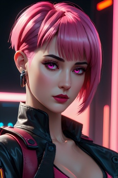 Anime Artwork Lucy (Cyberpunk), Pink Short Hair, Pink Eyes, Red Lips, Leather Skirt, Punk Stud Earrings, Bossy, Brave, Key Visual, Vibrant, High Detailed, Illustration, Short Straight Hair, Futuristic, NFT Art, Solid Color Background, Robotic Arm, Cartoon Coloring, Tendal Effect. Non-Realistic Rendering Transparency, Color Tilt, Animation, Blender Geometry Art, Intrlligence 4k Image, Epic, Cinematic Effects, Neon Cold Pounding, Octane Rendering, OC, 8k
