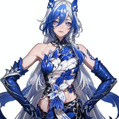 (masterpiece:1.3), (the best quality:1.2), (super fine illustrations:1.2), (Masterpiece), high quality, high detail, ((white background:1.2)), looking at viewer, (SOLO:1.4), outline, , simple background,bright pupils,pelvic curtain,blue fire,gauntlets,mechanical parts,white skin,phoenix,shorts,collarbone,jewelry,twintails,eyelashes,elbow gloves,armor,blue legwear,thighhighs,boots,facial mark,head wings,blue gloves,two-tone hair,earrings,gloves,tassel,leotard,skirt,dress,elbow gloves,twintails,bare shoulders,tattoo,phoenix,ribbon,blue ribbon,bangs,white hair,blue eyes,streaked hair,fu hua,blue hair,fiery hair,hair between eyes,multicolored hair,wings,jewelry,hair ornament,gloves,hair ribbon,pattern on hair,logo,white pupils,diamond shaped pupils,