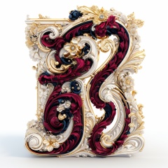 baroque style,hjyvktrtext2,((gold)),ruby,diamond,no humans,flower,(white background:1.2),still life,simple background,letter,text design,masterpiece,best quality,(highly detailed),<lora:hjyvktrtext2--000019:0.7>,c4d,3d model,