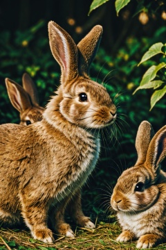 <lora:tutututu_20240119010100-000009:0.4>,brown rabbits,soft light,Three rabbits,lined up,tutututu,animal portrait,close-up,furry,long ears,masterpiece,best quality,