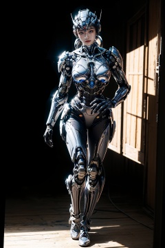 masterpiece,best quality,(highly detailed),1girl,cyborg,(full body:1.3),day light,bright light,wide angle,black background,<lora:hjyrobo5-000010:0.7>,