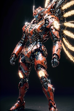masterpiece,best quality,(highly detailed),boy  soldier,Mechanical windproof outer garment,strong,cyborg,(full body:1.3),(bright lighting:1.3),wide angle,(Light gradient background:1.3),<lora:hjyrobo5-000010:1>,complex body,(red and black),(stand on shining blue light circle machinery Science Fiction Portal:1.2),slivery,light beam,Surface grave with Victorian patterns,