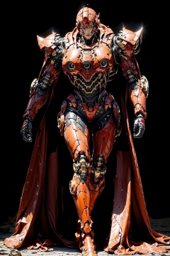 masterpiece,best quality,(highly detailed),girl soldier,Mechanical  cloak,strong,cyborg,(full body:1.3),(bright lighting:1.3),wide angle,(Light  background:1),<lora:hjyrobo5-000010:0.8>,complex body,(red and black),slivery:1.3,light beam,Surface grave with Victorian patterns,alien style,