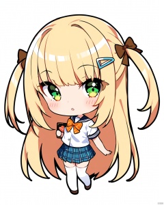 chibi,  1 little loli,  1girl,  solo,  plaid bow,  long hair,  skirt,  plaid,  thighhighs,  green eyes,  white background,  blonde hair,  two side up,  white thighhighs,  bow,  plaid bowtie,  simple background,  white shirt,  plaid skirt,  short sleeves,  shoes,  bangs,  very long hair,  full body,  shirt,  school uniform,  hair ornament,  blush,  heart,  looking at viewer,  pleated skirt,  standing,  parted lips,  :o,  holding,  bowtie,  orange bow,  hairclip,  loafers,  brown footwear,  sailor collar,  serafuku,  ribbon,  brown bow,  plaid ribbon,  orange bowtie,  zettai ryouiki,<lora:EMS-268703-EMS:0.800000>