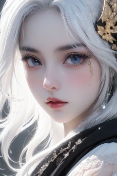 masterpiece,(best quality),Amazing,beautiful detailed eyes,((((1girl)))),finely detailed, Depth of field,extremely detailed CG unity 8k wallpaper,(((cute animal face))),(((a girl wears Clothes Black and white Taoist robes))),((Extremely gorgeous magic style)), ((((gold and silver lace)))),(((flowing lace))),(((flowing ((black)) and white background))),(((((gorgeous detailed eyes))))),(((((((gorgeous detail face))))))),((floating hair)),(((Pick and dye black hair in white hair))),(((flowing transparent black))),(((flowing transparent white))),(((((ink))))),((((small breast)))),(((extremely detailed gorgeous tiara))), (((white hair))),((black hair stick)),((white hair ornament)),((gold gorgeous necklace)), ((flowing hair)),(((The picture fills the canvas))),((The character is in the center of the frame)),(((flowing))),((bright pupils)),((((melt)))),(((((black and white melt)))))