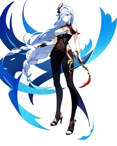 <lora:原神申鹤220B_v30:1>,shenhe,genshin impact,1girl,shenhe \(genshin impact\),breasts,solo,long hair,hair over one eye,toenails,toenail polish,full body,toes,large breasts,blue eyes,high heels,white background,bodysuit,looking at viewer,gloves,simple background,nail polish,covered navel,toeless footwear,braid,braided ponytail,weapon,bare shoulders,blue nails,standing,bangs,feet,very long hair,legs,hip vent,black bodysuit,