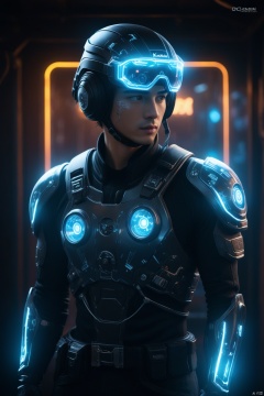 The image should be infused with the distinct qualities of a shot taken on a Canon 5D Mark IV with Kodak Ektar film - the colors are deep and resonant,the details are sharp yet possess an organic quality,and there's a subtle grain that adds a layer of depth and authenticity. This isn't just a photograph; it's a moment of raw emotion,frozen in time,inviting the viewer to not just see,but to feel.(masterpiece, top quality, best quality, beautiful and aesthetic:1.2),photo realistic, cinematic scene,advanced digital art,cyberpunk,lens flare,atmosphere,glow,detailed,intricate,a young man wearing a DT helmet with LED interactive screen and HUD heads-up display on the visor,cyberpunk
