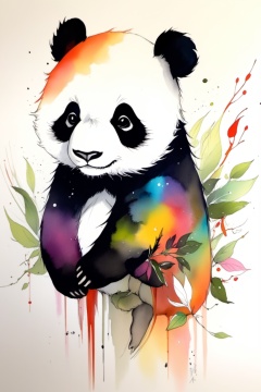 ink drawing by Anne Bachelier,bright colors theme,panda