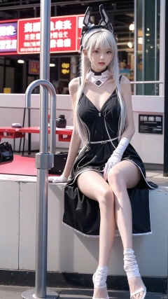 1girl,full body,sitting,street,city,building,vivid,colorful,big breasts, tianqiji