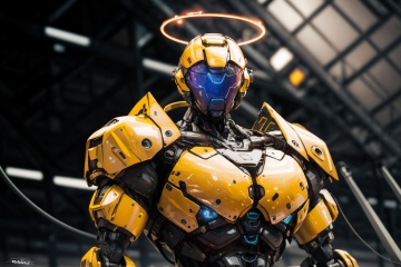 -science fiction, robot, halo, solo, humanoid robot, upper body, blurry, mecha, glowing, no humans, signature, blurry background, radio antenna, helmet, cable, 1other,<lora:Apocalypse Aso_20240119162949:1>,Apocalypse Aso,