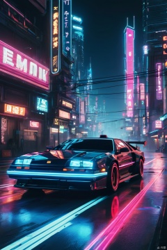 Cyberpunk city, cyberpunk car driving, neon lights, night, masterpiece, 4k, best quality, slight motion blur, photorealism