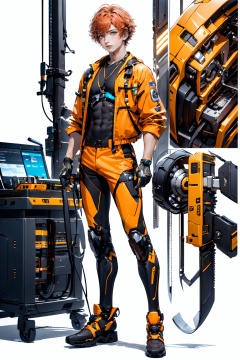[(white background:1.5)::5],(imid shot:0.95),(full body:1.25),(falt color:1.3),colorful,(masterpiece:1,2),best quality,extremely detailed cg 8k wallpaper,best quality,masterpiece,highres,original,extremely detailed wallpaper,(solo:1.25),(1 boy:1.5),Short curly orange hair,green eyes,Angel aperture,Tooling,engineer,wrench,pliers,mechanical table,future,science fiction,mechanical device,glowing fan,Cyber Aso,<lora:Cyber Aso_20240119182540:0.8>,