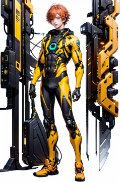 [(white background:1.5)::5],(imid shot:0.95),(full body:1.25),(falt color:1.3),colorful,(masterpiece:1,2),best quality,extremely detailed cg 8k wallpaper,best quality,masterpiece,highres,original,extremely detailed wallpaper,(solo:1.25),(1 boy:1.5),Short curly orange hair,green eyes,blue Angel aperture,Tooling,engineer,wrench,pliers,mechanical table,future,science fiction,mechanical device,glowing fan,Cyber Aso,<lora:Cyber Aso_20240119182540:0.8>,