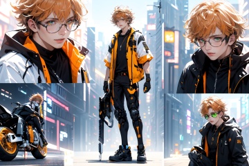 [(white background:1.5)::5],(imid shot:0.95),(full body:1.25),(falt color:1.3),colorful,(masterpiece:1,2),best quality,extremely detailed cg 8k wallpaper,best quality,masterpiece,highres,original,extremely detailed wallpaper,(solo:1.25),glowing,(1 boy:1.5),Mature male,Sunny boy,happy,Short curly orange hair,green eyes,On a motorcycle,Orange glasses,workwear,engineer,Tooling,wrench,pliers,mechanical table,future,science fiction,mechanical device,big fans,Cyber Aso,<lora:Cyber Aso_20240119182540:0.2>,<lora:Cyberworld_20230622141420-000018:0.8>,