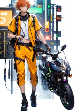 [(white background:1.5)::5],(imid shot:0.95),(full body:1.5),(falt color:1.3),colorful,(masterpiece:1,2),best quality,extremely detailed cg 8k wallpaper,best quality,masterpiece,highres,original,extremely detailed wallpaper,(solo:1.25),glowing,(1 boy:1.5),Mature male,Sunny boy,happy,Short curly orange hair,green eyes,workwear,Tooling,engineer,wrench,pliers,mechanical table,future,science fiction,mechanical device,big fans,<lora:Cyberworld_20230622141420:0.8>,