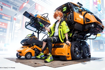 [(white background:1.5)::5],(imid shot:0.95),(full body:1.5),(falt color:1.3),colorful,(masterpiece:1,2),best quality,extremely detailed cg 8k wallpaper,best quality,masterpiece,highres,original,extremely detailed wallpaper,(solo:1.25),glowing,(1 boy:1.5),Mature male,Sunny boy,happy,Short curly orange hair,green eyes,sitting,Orange goggles,workwear,engineer,Tooling,wrench,pliers,mechanical table,future,science fiction,mechanical device,big fans,<lora:Cyberworld_20230622141420:0.8>,