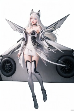 (RAW photo, best quality, masterpiece:1.2),(super realistic, photo-realistic:1.3),ultra-detailed,extremely detailed cg 8k wallpaper,skin gloss,light persona,flawless,clean,professional artwork,famous artwork,perfect face,beautiful face,(crystalstexture skin:1.2),(extremely delicate and beautiful),1girl, solo, blue eyes, long hair, white background, open mouth, dress, white dress, smile, full body, simple background, looking at viewer, boots, white hair, bare shoulders, mecha musume, tail, bangs, breasts, wings, :d, headgear, thighhighs, white footwear, upper teeth only, high heels, tattoo, teeth, young girl,