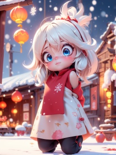 (an extremely delicate and beautiful),((masterpiece)),(((best quality))),((ultra-detailed)),((illustration)),((solo)),((((a girl)))),(beautiful detailed girl),(((cheongsam))),((((((arms_behind_back)))))),red eyes,((((beautiful detailed eyes)))),white hair,spring festival,(((chinese new year))),(((snow))),((lunar new year)),firecracker,Temple Fair,((busy street)),(detailed fireworks),finely detail,(firecracker),((the best building)),(((best shadow))),many people,(Flying snowflakes),, masterpiece,bestquality,highlydetailed,ultra-detailed,extremely detailed CG unity 8k wallpaper, illustration,1girl,