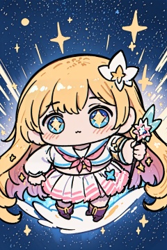 ((magical girl)),((gorgeous starry sky background)),((ultra-detailed)),((best illustration)),((cinematic lighting)),dynamic angle,floating,finely detailed,(glitter:1.2),(sparkle:1.2),(shine:1.2),classic,(painting:1.1),(sketch:1.1),(best quality),(masterpiece:1.2),(anime style),(solo),beautiful detailed face,(cute face:1.3),(big eyes:1.3),colorful hair,(long hair:1.2),(floating hair:1.2),(serafuku:1.5),detailed outfit,(sparkling wand:1.3),(magical effects:1.3),(flowing skirt:1.2),(cute boots:1.1),(transparent fabric:1.1),(twinkle:1.2),(glow:1.2),(radiance:1.2),(flicker:1.2),(dazzle:1.2),<lora:生草福娃:1>,