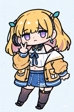 ((masterpiece)),(best quality), (illustration),((extremely detailed CG unity 4k wallpaper)),((ultra -detailed)),(cinematic lighting),official_art, beautiful and detailed glow,dynamic angle,(cinematic lighting),huge_filesize,Celluloid,(an extremely delicate and beautiful girl:1.2),(yellow hair),hair behind ear,straight hair,purple eyes,(white off-shoulder shirt,halterneck,loose cropped jacket,black legwear,headphones,earrings,short),(head tilt),frown,(smile:0.85),,looking at viewer,reticule,building, (streetscape), ,