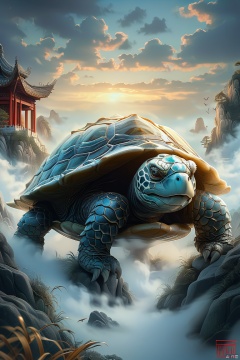shanhaijing,Ancient Chinese mythical animal, turtle, solo, outdoors, sky, cloud, no humans, animal, cloudy sky