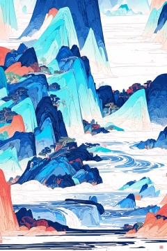 guohuashanshui,Masterpiece,Best Quality,even,Ditu, scenery,no humans, architecture, east asian architecture, building, Line art,flat color,The ultra wide-angle lens,magnificent and breathtaking scene,epicmasterpiece,8K,The ancient Chinese-style architecture,surrounded by blooming flowers,lush green leaves,bamboo forests,flowing mountains,waterfall,small bridge,winding paths,Thesunlight shines brilliantly,(nohumans),minimalism,(Zen aesthetics:1.2),(Zen composition:1.3),Chinese landscape painting,
