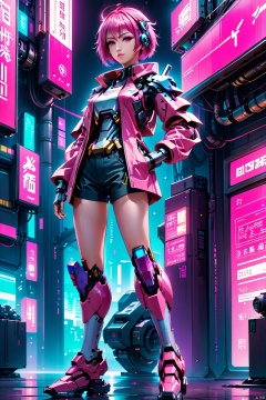 anime artwork of a girl\(cyberpunk, mecha\), full body, Pink parted short hair, pink eyes, imperious, cyberpunk, dramatic, key visual, vibrant, highly detailed, holographi,<lora:EMS-59656-EMS:0.300000>,<lora:EMS-46488-EMS:0.300000>,<lora:EMS-23104-EMS:0.300000>