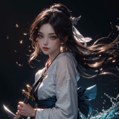 ((detailed light)),cinematic lighting,lens flare,light leaks,sunlight,shine,beautiful detailed glow,best quality,masterpiece,illustration,an extremely delicate and beautiful,extremely detailed,CG,unity,8k wallpaper,Amazing,finely detail,masterpiece,best quality,official art,extremely detailed CG unity 8k wallpaper,beautiful detailed girl,extremely detailed eyes and face,beautiful detailed eyes,absurdres,incredibly absurdres,huge filesize,ultra-detailed,highres,extremely detailed,dynamic angle,floating,frills,painting,depth of field,Depth of field,nature,solo,fashi-girl,1girl,portrait,(upper body),(hanfu),illustration,((glowing sword)),water,sea spray,flame,((holding sword)),fluttered detailed ink splashs,[[colorful5]],((messy hair)),very long hair,((eyes glowing)),, masterpiece, best quality