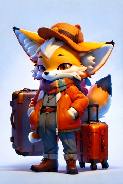 a drawing of a fox wearing a hat and coat with a suitcase in his hand and a scarf around his neck, white background, character design, Cliff Childs, furry art, lineart