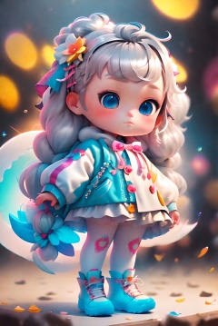 Clear Color PVC Clothing, Clear Color Vinyl Clothing, Prismatic Shape, Holographic, Color Difference, Fashion Illustration, Masterpiece, Girl with Harajuku Fashion, A Cute Girl, Long Silver Hair, Bangs, Blue Eyes, Short Skirt, 8k, Ultra Detail, Lida