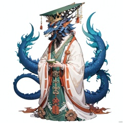 masterpiece, best quality, Dragon King, solo, hat, white background, holding, full body, no humans, robe