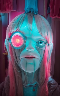 Frightening, key visual, Kingcore, anaglyph effect, Creepy Charming Sasquatch, Cold Colors, moody lighting, Light, Depressing, Acid colors palette, Dragoncore, Embarrassing, fluorescent blue and electric pink neon hue, Fantasy, natural lighting, Horror