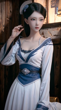 masterpiece,best quality,1girl, solo, hair ornament, black hair, realistic, dress, chinese clothes, cowboy shot, dynamic pose, dynamic angle,