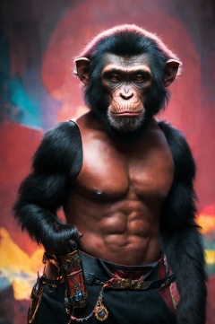 (masterpiece, top quality, best quality, official art, beautiful and aesthetic:1.2) ,cover art, two colors, (Yak:1.1) - Chimpanzee hybrid, it is Vampiric and Tiny, Kodachrome, Proud, Concept artist, Sad, overly complex style, Angry, Fantasy, Soutache, Cold Colors, loop lighting