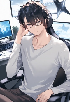 bishounen, casual, computer,monitor,gaming_chair ,sitting