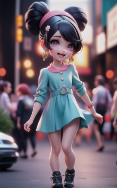 1girl,Long Slicked-Back Hairstyle,A bustling, modern city street during a vibrant, lively jazz festival,Mini dress,Hopeful facial expression,dynamic attitude,