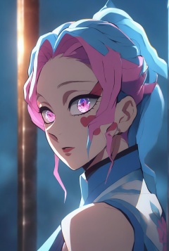 a light on a blue,faced k-pop girl,(masterpiece:1.2),hi-res,4k,extremely delicate and beautiful art,pastel color,jinx_/(league of legends/),pink eyes,blue hair,portrait,