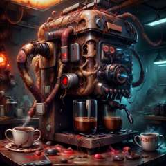 <lora:RottenTech-30:0.8>,rottentech , scifi,biohazard,  filthy, <lora:add_detail:0.4>coffee machine,coffee mug,