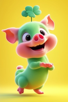 solo,smile,open mouth,simple background,full body,no humans,yellow,background,flying,<lora:lbb-000008:0.6>,<lora:MW_十二生肖_v1.0:0.8>,four-leaf clover on the head,<lora:2Msd15_lcm_lora_rank1:0.8>,pig,