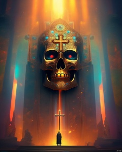 vivid color art of breathtaking, full_body, (solo:1.1), fine image quality, facial details, masterpiece,  Male, full_body, Best quality,  unknown mysterious surreal, masterpiece, ultra high res, detailed background, Surrealism, photo, cross, realistic style, fullbody, ( god statues in the background), (dynamic posture:1.3), random posture, jagged blocky smooth edges centered composition, professional,  . deep 3D,  volumetric,  dimensional,  depth,  metal,  high stack,  old texture,  many Dimensions centered composition, professional, ,  dramatic,  mysterious,  dark force, death,<lora:EMS-269864-EMS:-0.100000>,<lora:EMS-272013-EMS:-0.200000>,<lora:EMS-258244-EMS:0.300000>