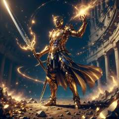 <lora:add_detail:0.3><lora:MidasMagic-22:0.8>,  midasmagic, golden aura , glint,fantasy, full body, (magic gladiator:1.1) , enchanted , strong , in an arena , holding a giant sword