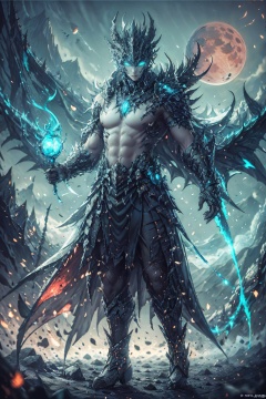 a boy,gmlwman,Outdoor, high mountain, now above the mountain top, open your hands, red moon, evening, crow.
